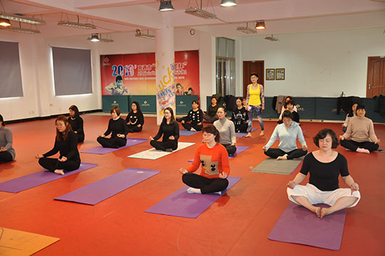 “調(diào)整呼吸,將你的脊柱盡量向前延伸??????”,走近公司總部辦公樓四層大廳,伴隨著輕柔的背景音樂聲,映入眼簾的是二三十位美女在瑜伽墊上整齊劃一地練習(xí)著。這是公司在“國際婦女節(jié)”精心策劃的一次活動(dòng):2018年3月8日下午特邀資深瑜伽教練,來到公司為我們?nèi)サ呐總冇H授一堂瑜伽課程。
