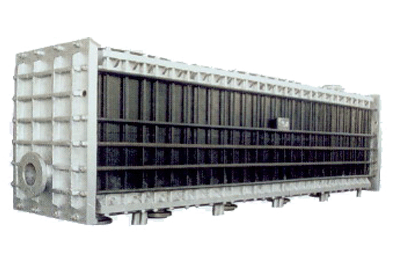 新型矩型塊孔自流式偏鈦酸石墨冷卻器由矩型石墨封頭、石墨換熱塊及其間的密封墊片等迭裝組成,因換熱塊僅承受壓力并為整體結(jié)構(gòu),無(wú)膠結(jié)縫,因而結(jié)構(gòu)強(qiáng)度較高,抗沖擊性良好。水封側(cè)板為鑄鐵板,檢修裝拆簡(jiǎn)便,也可制成雙向防腐結(jié)構(gòu),該設(shè)備物料單塊一流程,冷卻水側(cè)為1-4流程。