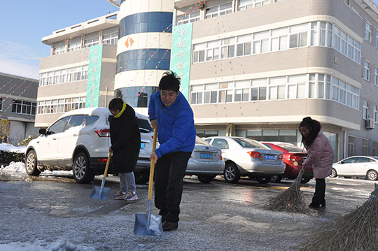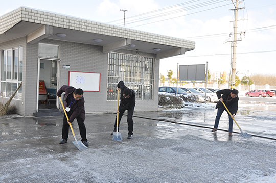 26日一大早,三圣高管團(tuán)隊(duì)在馮圣君董事長的帶領(lǐng)之下,操起鐵鍬,揮舞掃帚,分區(qū)分片,親自清除廠區(qū)主干道上的結(jié)冰積雪。為了安全與暢通,現(xiàn)場熱火朝天。