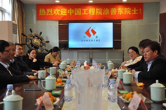 12月11日,中國工程院涂善東院士率華東理工大學(xué)張顯程教授、周邵萍教授、周幗彥教授、賈九紅副教授、徒云副教授一行六人,蒞臨南通三圣企業(yè)集團(tuán)視察指導(dǎo),南通三圣企業(yè)集團(tuán)馮圣君董事長率領(lǐng)研發(fā)團(tuán)隊(duì)核心成員熱情接待了涂院士一行,涂院士就前沿技術(shù)向企業(yè)作了詳盡介紹。