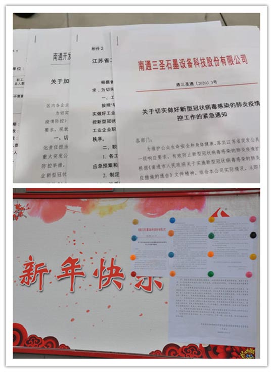 2020年伊始,在這場(chǎng)沒有硝煙的抗疫戰(zhàn)斗中,億萬中國人民團(tuán)結(jié)一心、同舟共濟(jì),眾志成城抗疫情。自爆發(fā)疫情以來,三圣企業(yè)集團(tuán)也立即成立防疫領(lǐng)導(dǎo)小組,緊急召開兩次會(huì)議,部署相關(guān)防疫工作,嚴(yán)格執(zhí)行《南通市人民政府關(guān)于實(shí)施新型冠狀病毒感染的肺炎疫情一級(jí)響應(yīng)措施的通告》文件精神。