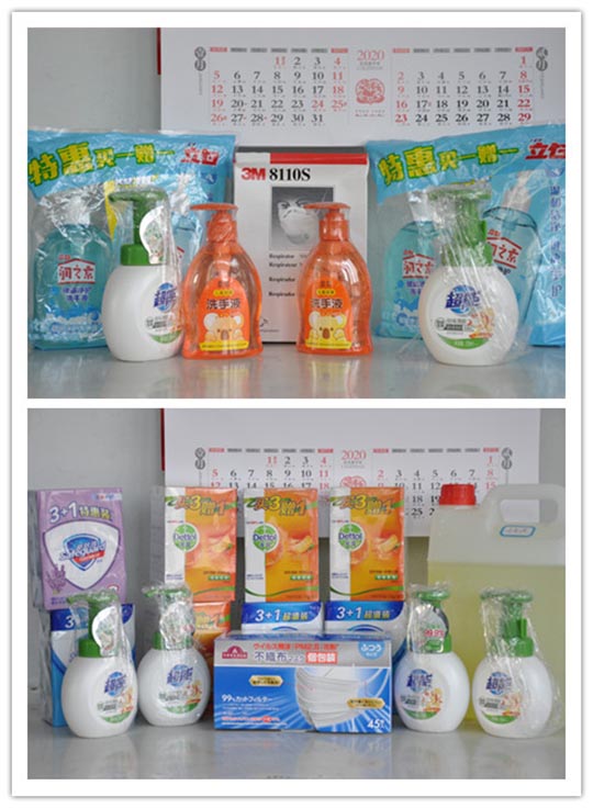 時(shí)刻關(guān)心員工的身心健康,在醫(yī)療物資條件緊缺下,提前購置體溫計(jì)、消毒液、口罩、消毒洗手液、消毒肥皂等消毒防疫物品。為打好防疫站,做好充分準(zhǔn)備!