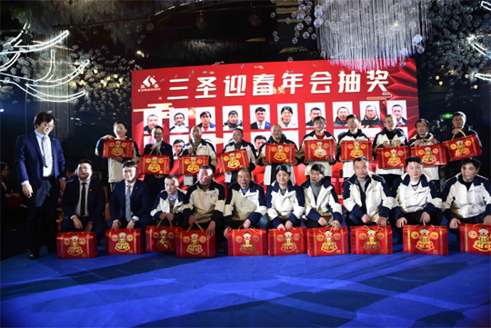 會場的三圣人很快樂,但也不能忘了依然在各個工地中堅守崗位的其他同事。通過現(xiàn)場視頻聯(lián)系,也向他們送去了新春的祝福。