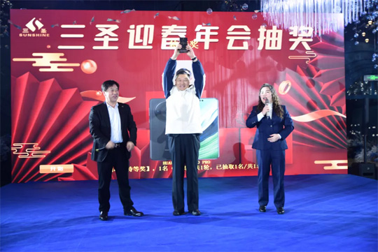 會場外寒冬料峭,會場內(nèi)熱情似火。一場接一場的抽獎,超80%的中獎率,將會場氣氛推向一個又一個的高潮。幸運兒們高舉獎品,迎接著臺下人們羨慕的眼神及熱烈的歡呼。