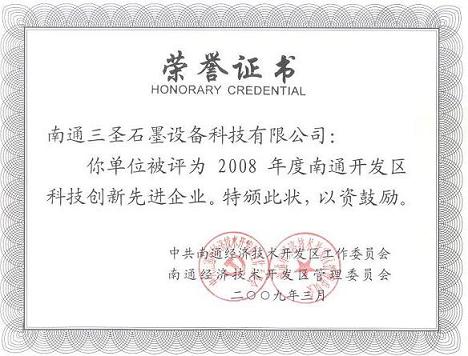 我公司被南通經(jīng)濟(jì)技術(shù)開發(fā)區(qū)評為2008年度技術(shù)創(chuàng)新先進(jìn)單位