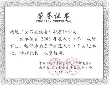 我公司被南通經(jīng)濟(jì)技術(shù)開發(fā)區(qū)評為2008年度人才工作先進(jìn)單位